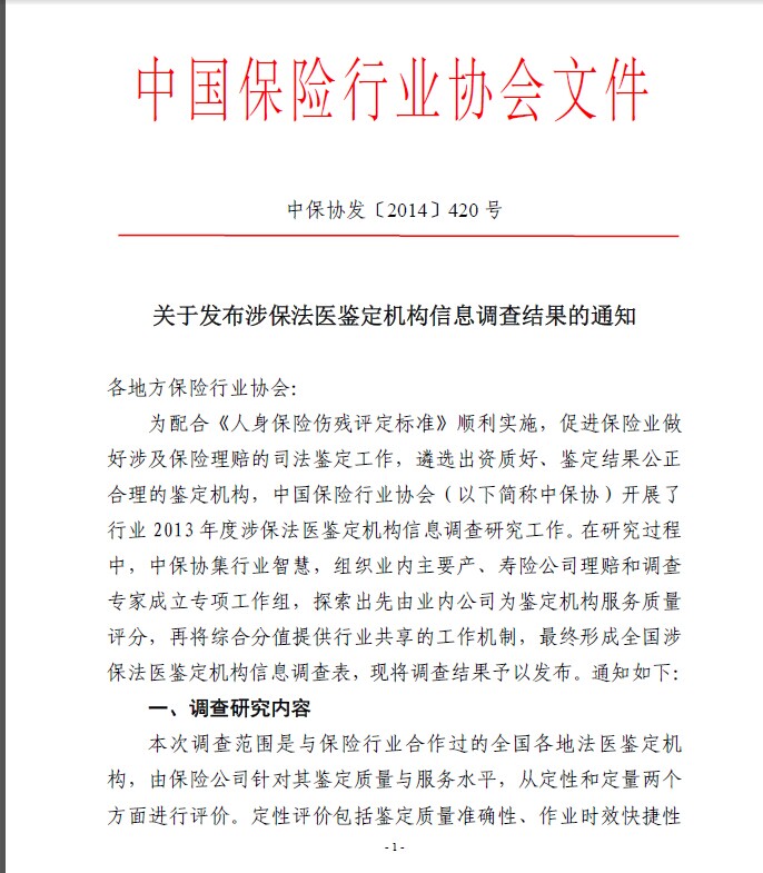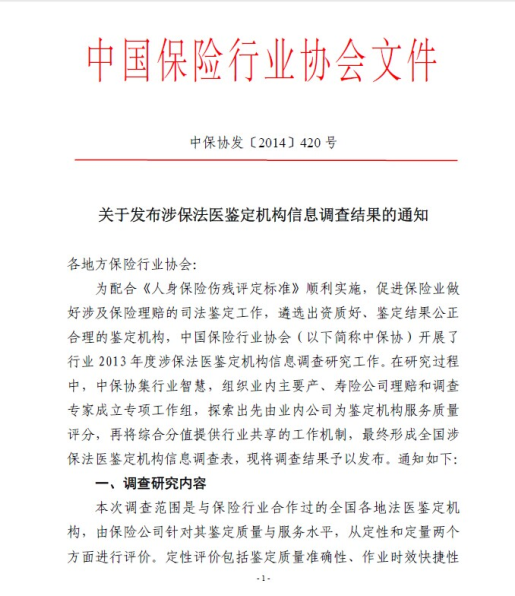 中保协发布涉保法医鉴定机构信息调查结果相关发文