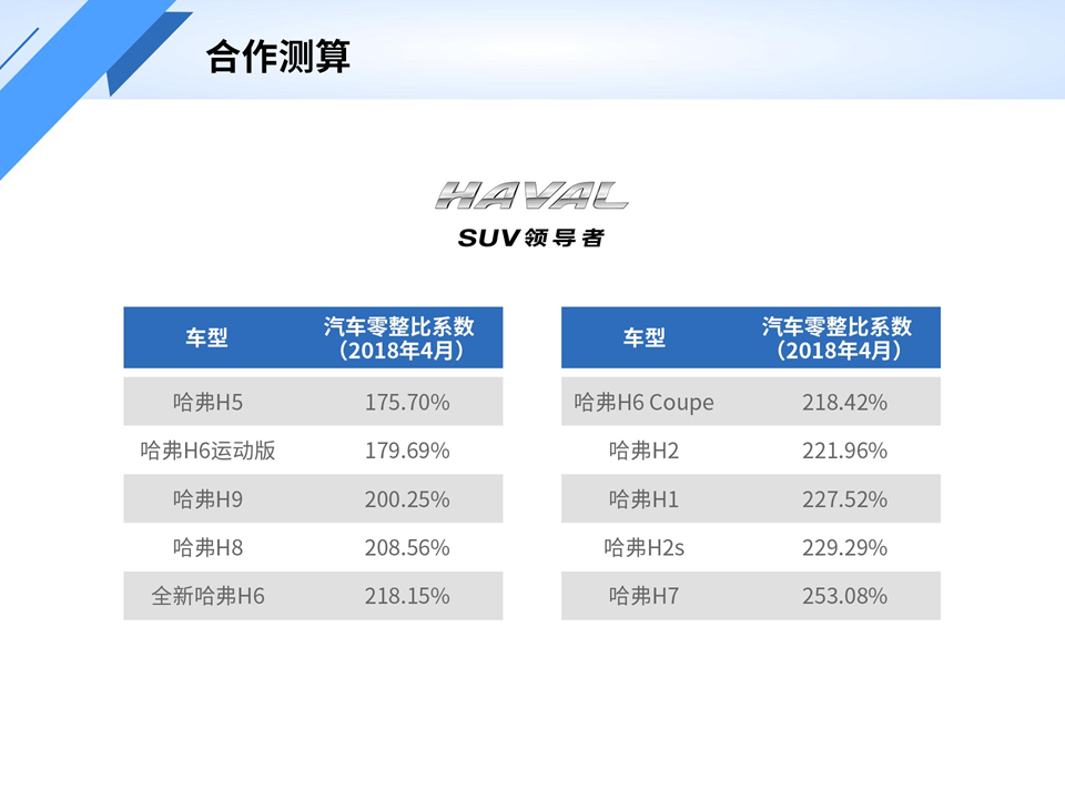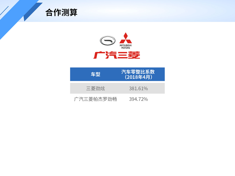 汽车主机厂合作测算零整比数据(2018年4月)